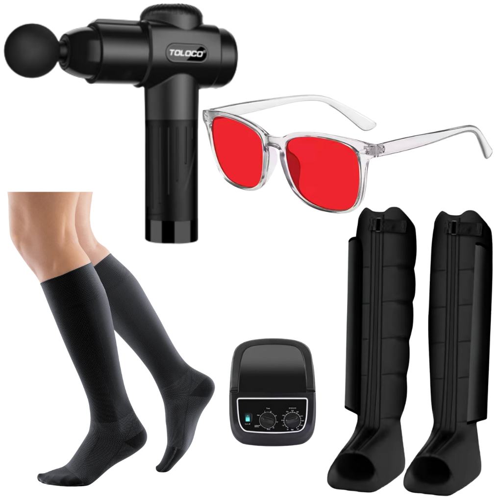 Together they create total synergy: the gun works the muscles, boots flush them out, socks keep circulation strong during the day, and glasses lock in overnight repair. You wake up fresher, less sore, and ready to go again. Perfect for athletes or anyone looking to recover faster